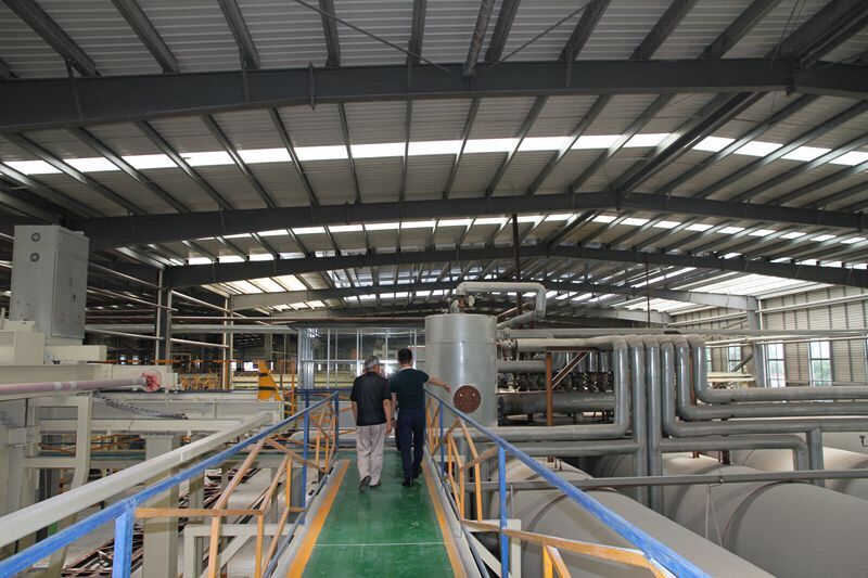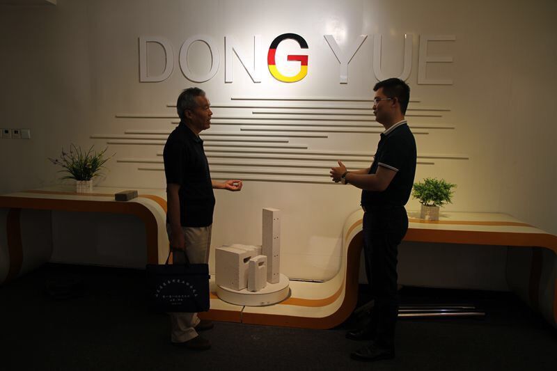 營銷總經(jīng)理鄧奎與許世平副會長參觀東岳氣混凝土板材生產(chǎn)線